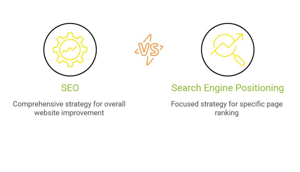 Search engine positioning versus SEO comes down to focus and speed. SEO improves your entire website over the long term through keyword research, content creation, technical SEO and link building. Search engine positioning, on the other hand, zooms in on specific pages and target keywords to improve their search rankings faster.