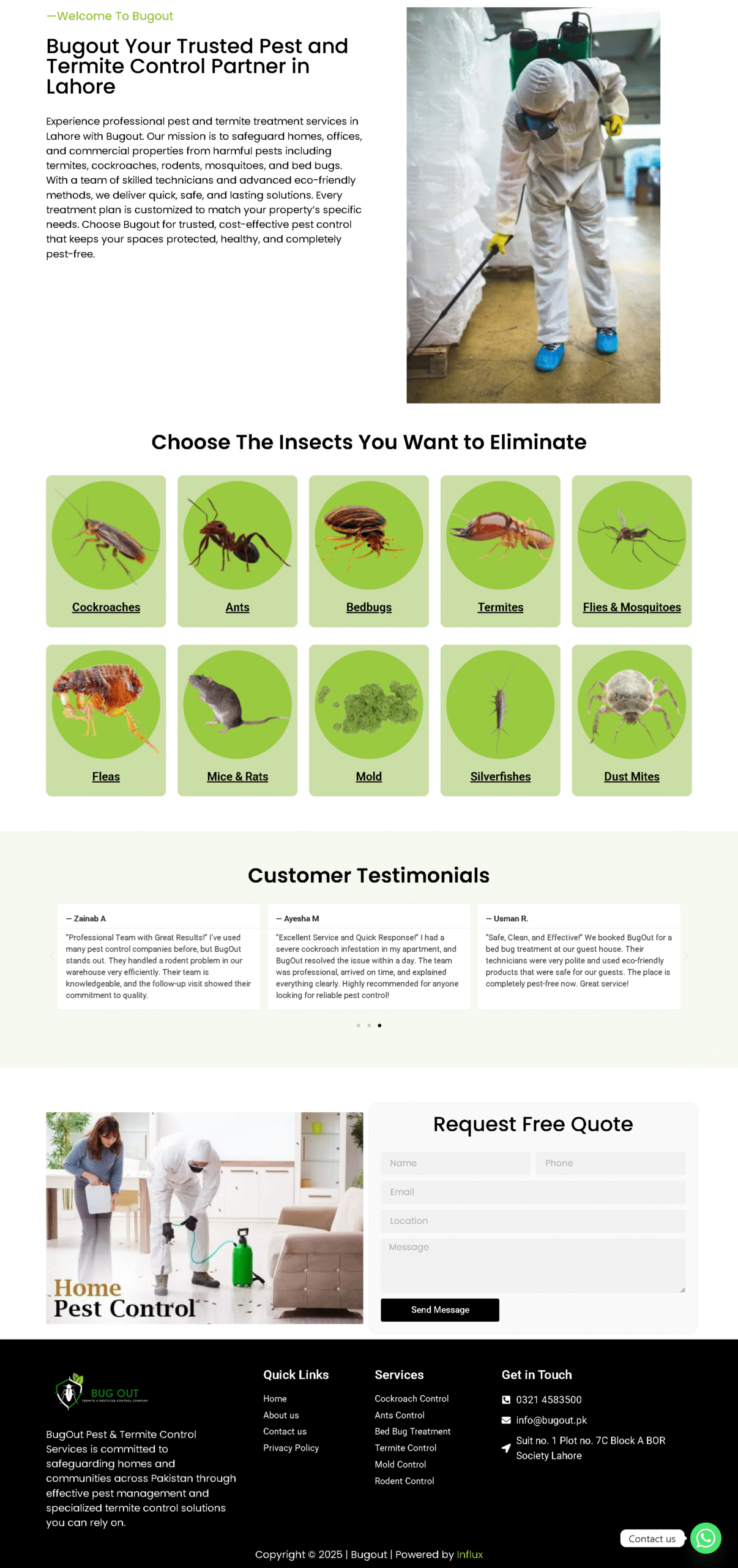 The newly developed website gave Bugout a modern online identity, improved visibility in local searches, and made it effortless for customers to request pest control services. Post-launch, Bugout experienced higher engagement, smoother customer inquiries, and stronger brand trust.