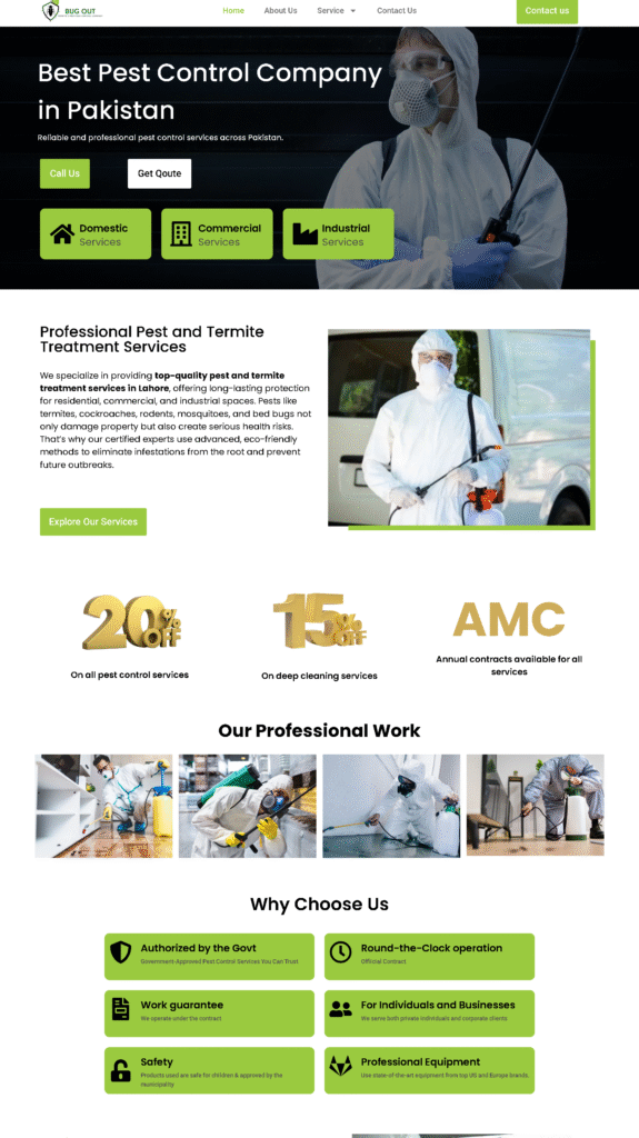 Our development team began by understanding Bugout’s brand and service offerings. We designed a user-friendly interface with clear navigation and professional visuals that highlight their pest control expertise. The website was developed with full responsiveness across devices, optimized for speed, and included a simple booking form to improve lead generation.