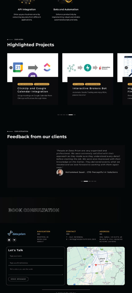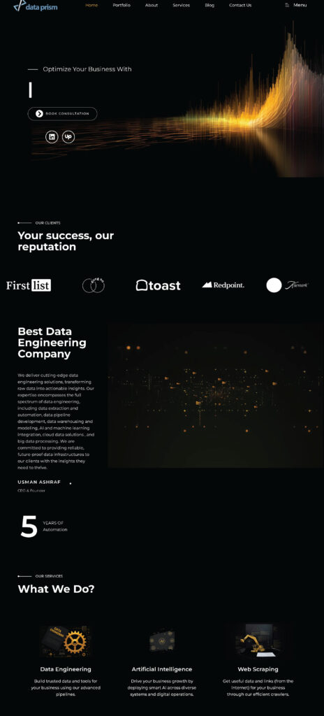 After close collaboration with TheDataPrism’s leadership team, we successfully delivered a performance-optimized, aesthetically refined website that clearly communicates their service offering and brand mission. The site is now live and actively supporting their business goals.